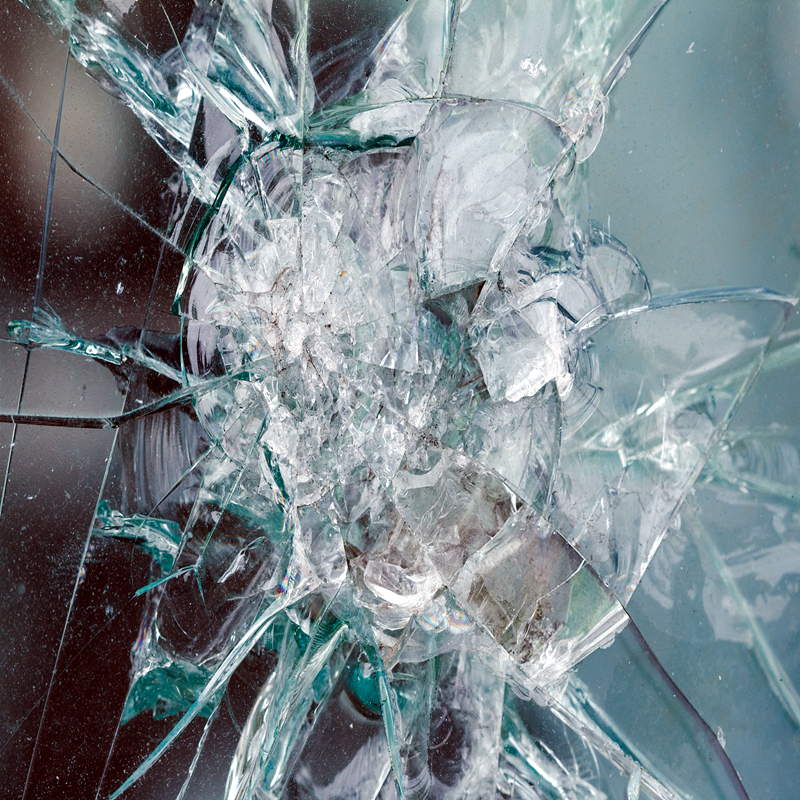 Photo: Top: Ordinary glass shatters and does nothing to stop the passage of a speeding bullet. Bottom: Bulletproof glass shatters too, but the layers of plastic sandwiched between the layers of glass absorb and dissipate the bullet's energy. If it does manage to penetrate through the glass, it will be greatly slowed down and it will do much less damage.